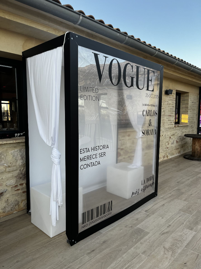 Dale a tu evento un toque único y lleno de estilo con el Photocall Revista, la experiencia donde tus invitados se convierten en portada. ✨